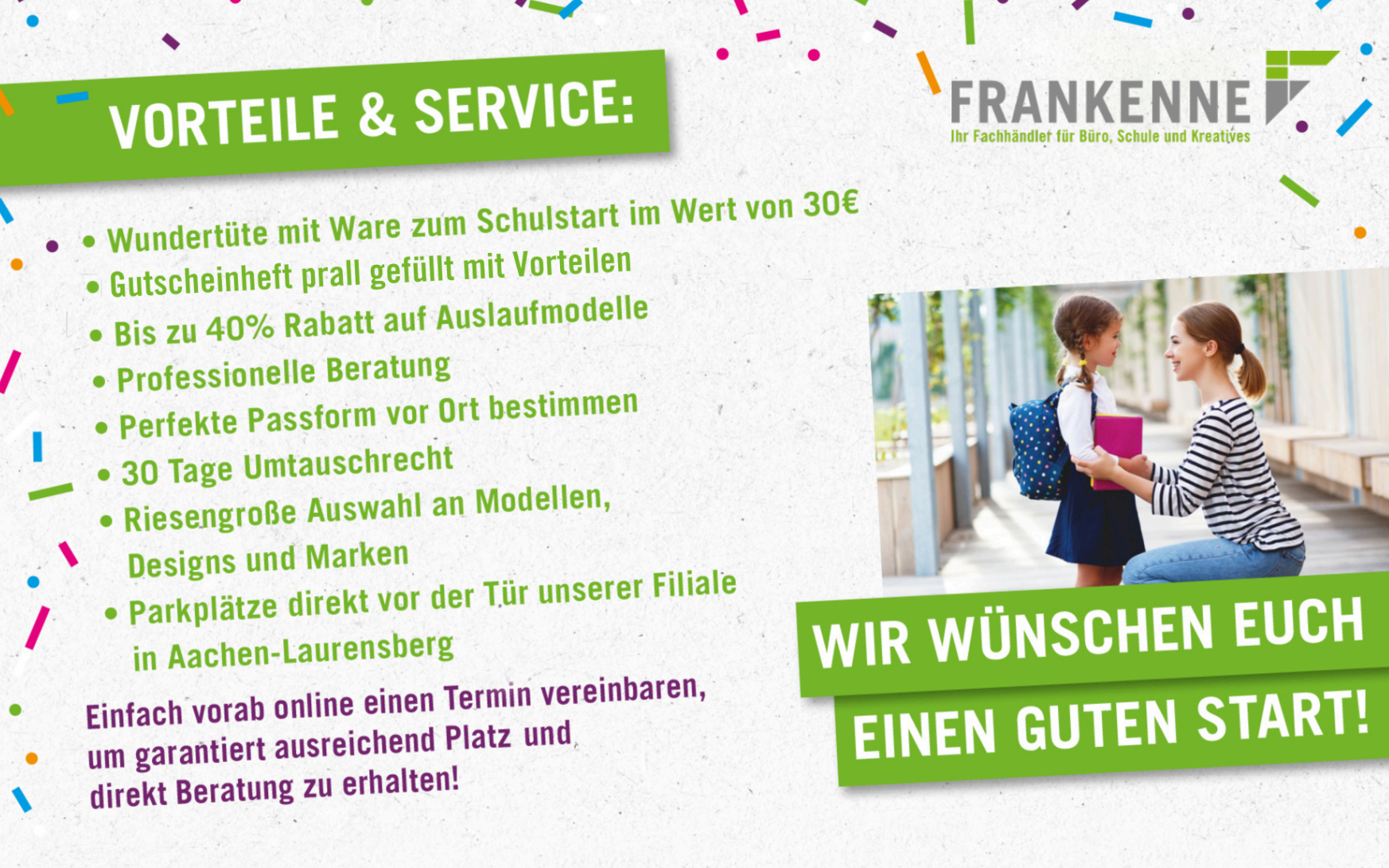 Die Ranzenwochen bei Frankenne sind zurück und wir haben alles, was ihr für die Schule benötigt. Ob ihr auf der Suche nach neuen Schulranzen seid oder professionelle Beratung braucht, bei uns seid ihr richtig.
